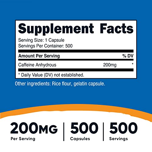 Nutricost Caffeine Pills, 200mg Per Serving (500 Caps)