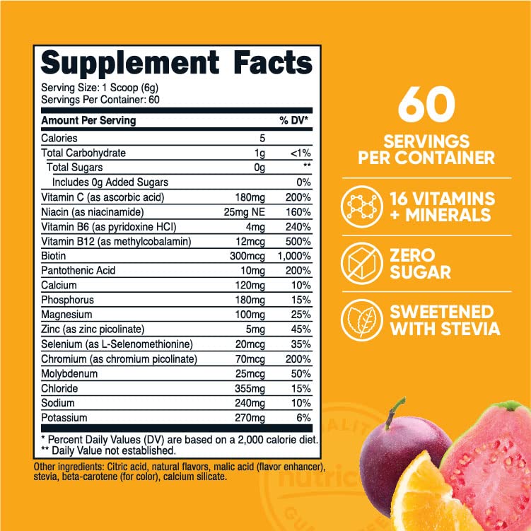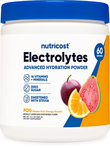 Nutricost Electrolytes Advanced Hydration Powder – Passion Fruit, Orange & Guava (POG) 60 Servings – Zero Sugar, 16 Vitamins & Minerals